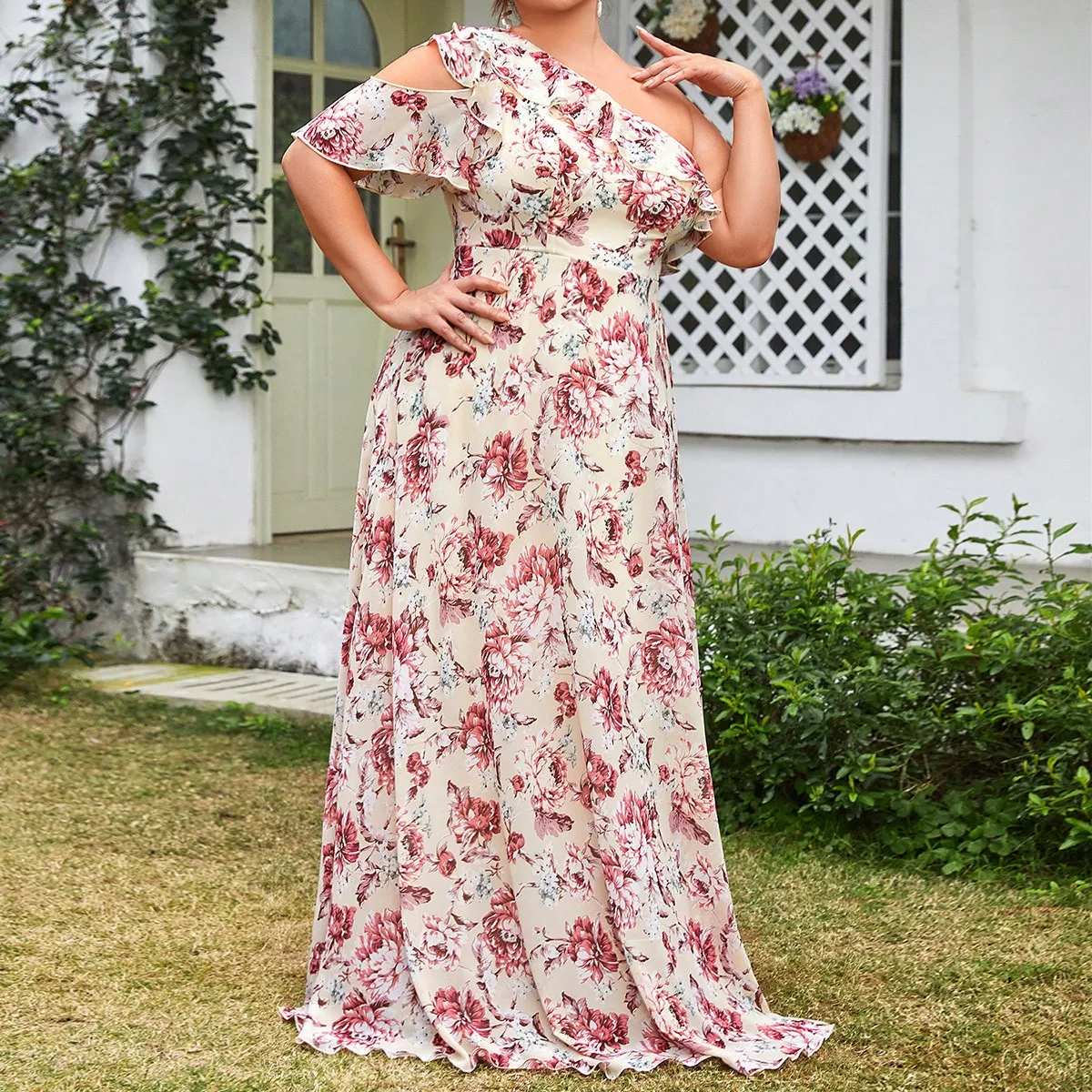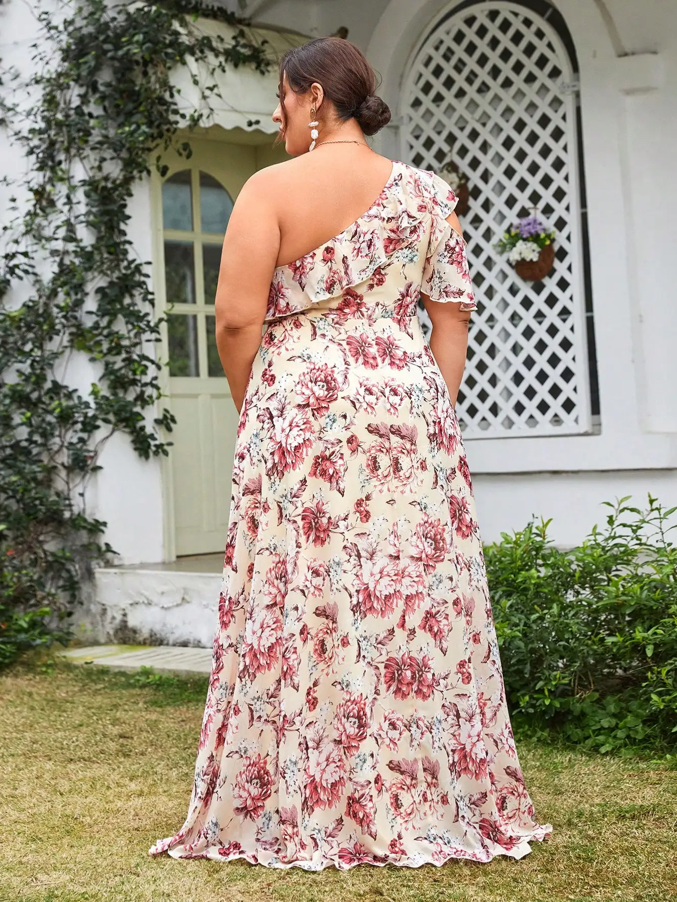 Vestido Estampado Longo Plus Size Assimétrico Ombro Único