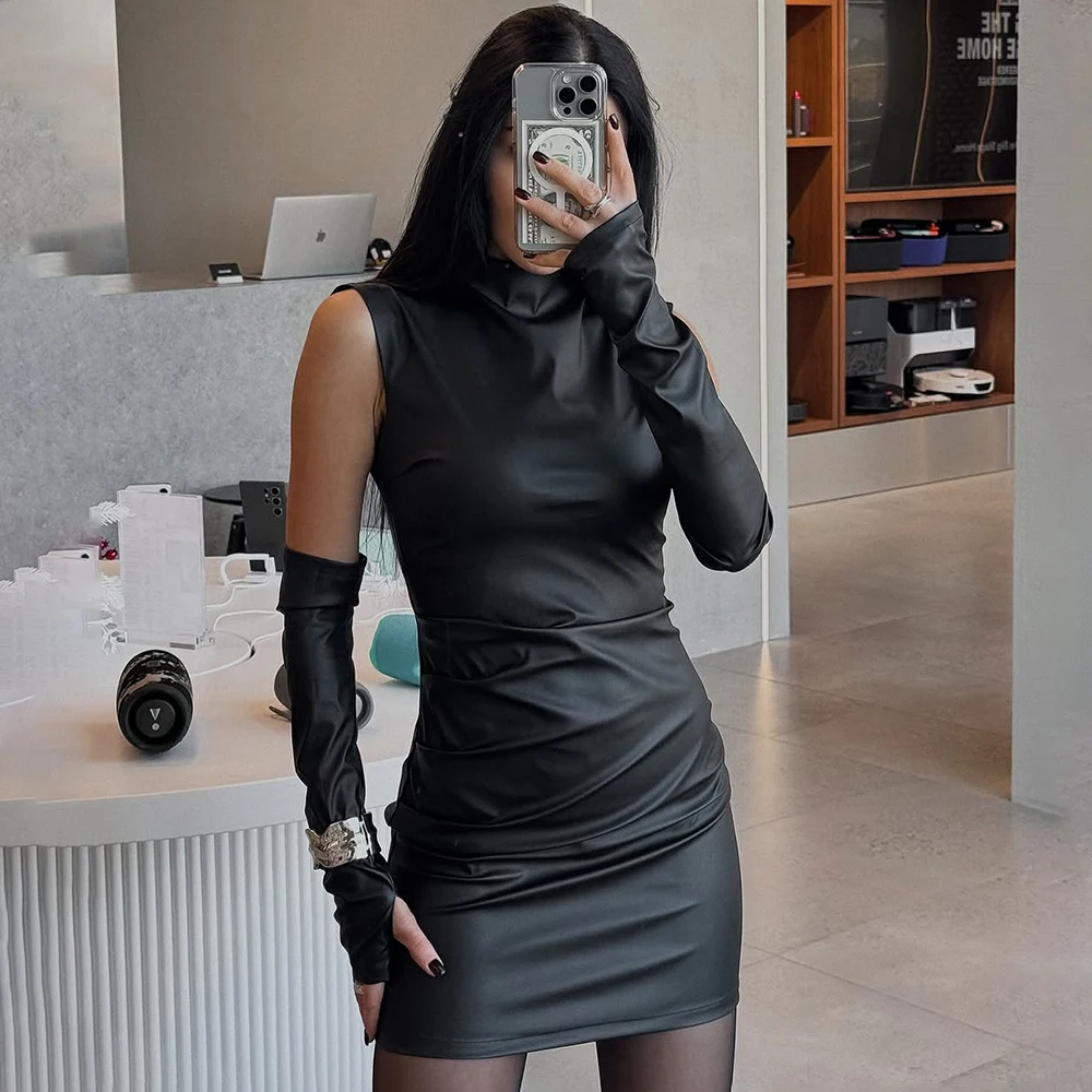 Com um corte magro e ajuste perfeito ao corpo, o Vestido Impacto de Couro destaca a silhueta com um toque de atitude. O material de couro de plutônio oferece durabilidade e conforto, enquanto o zíper frontal facilita o uso. Perfeito para ocasiões especiais, festas e clubes, ele traz um ar de modernidade e confiança, aliado ao estilo da moda Y2K.