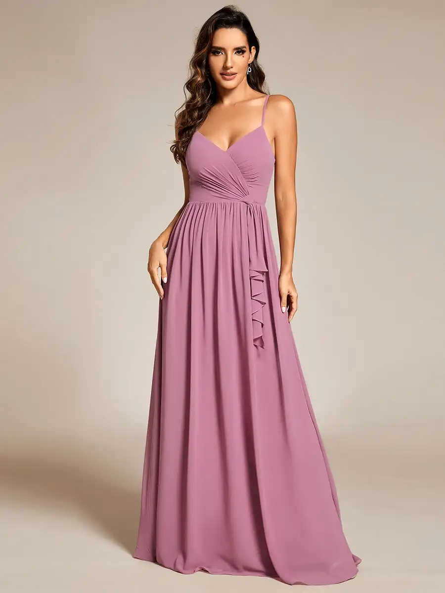 O Vestido Longo Plissado Folha de Lótus Até o Chão na deslumbrante cor orquídea é a escolha perfeita para quem busca um visual sofisticado e etéreo. Com modelagem plissada, design sem mangas e detalhe delicado de folha de lótus, ele traz um caimento impecável e uma fluidez encantadora. Ideal para madrinhas, festas formais e eventos especiais, esse vestido combina charme e conforto com elegância atemporal.